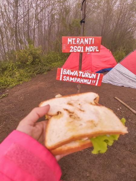 Deleteroti apaan ya kemarin ini, macam sandwich mas Bay hahaha, gaya bener ya, jadi temen aku ini kalau naik gunung pantang makan mie katanya, jadi yang dibawa bekalnya ala ala western gini